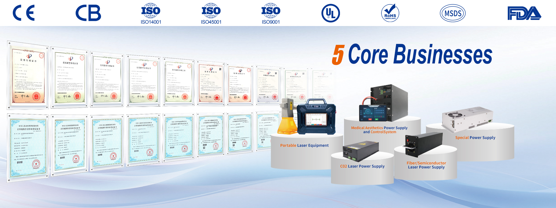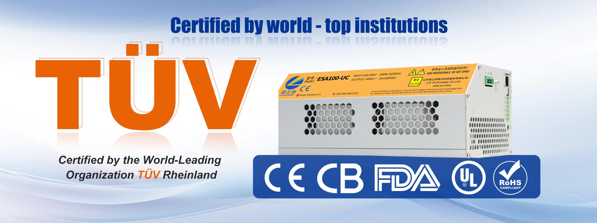 LZY possesses robust experimental capabilities, equipped with industry-leading high-precision experimental equipment and testing platforms. Collaborating closely with Shandong Provincial Product Quality Inspection and Research Institute and Information and Communication Technology Research Institute, it possesses experimental and testing capabilities for EMC experiments, environmental experiments (climate, chemistry), and load experiments (mechanical, electrical). The company's automotive electronics products have all passed relevant certifications, and some aesthetic and industrial laser power supply products have obtained international and national certifications. These achievements have significantly enhanced LZY's technological research and development capabilities and product quality, comprehensively boosting its global market competitiveness.